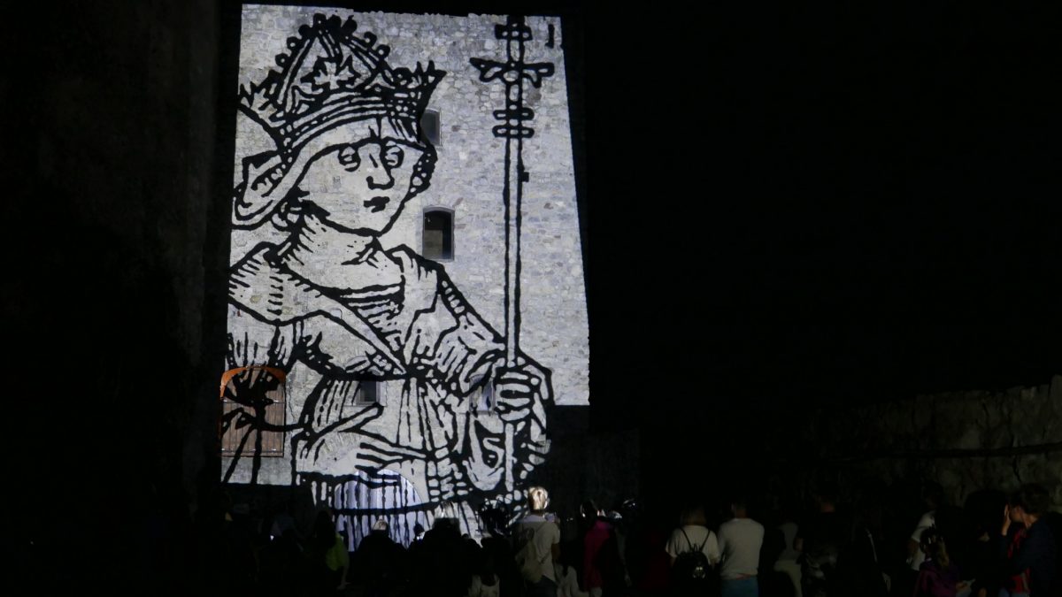 18. November 2018The magnificent sightseeing of Strečno Castle in a night-time atmosphere with an extraordinary program in the castle’s monsters. The personality of this year’s night tour was one of the owners of Strečno Castle, Barbora Celjska. Her life in short humorous scenes was approached by the Wagus Historical Fencing Group and revived in the courtyard of the castle in the Light Shadow Queen Barbora thanks to the modern technology of light and motion – projection mapping from the artists of TRAKT. Part of the tour was also a fire show, performance of Kapor improvisation theater on the stage, or mini-concert in the chapel.
