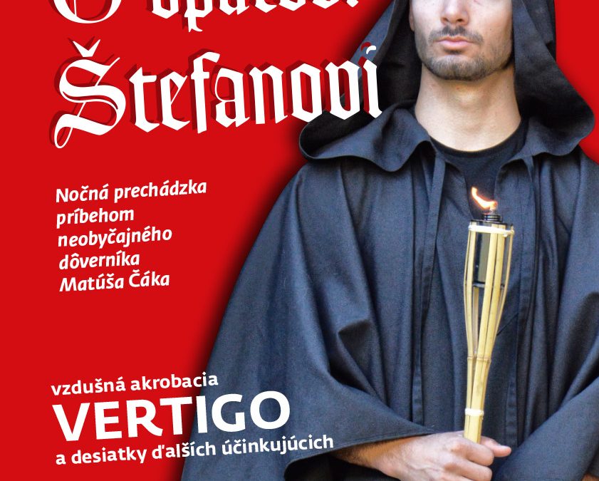 29. júna 2017Štvrté pokračovanie nočného open air podujatia Príbehy z Trenčína 30. júna a 1. júla 2017 ponúka príbeh o neobyčajnom dôverníkovi Matúša Čáka. Legenda O opátovi Štefanovi sa odohrala na trenčianskom Ostrove. Na 11 stanovištiach sa predstavili vzdušní a pozemní akrobati, artisti nielen vo vzduchu a na zemi, ale i na vode, svetelné a ohňové divadlo aj unikátne premietanie – holografia na vodnú stenu z dielne umelcov TRAKTu. Okrem nás umelecké výkony divákom predstavili akrobaticko-tanečné zoskupenie Vertigo, skupina historického šermu Hector, folklórny súbor Čajka, trenčianski freeruneri Born to Trick. Autorom príbehu je už tradične Vlado Kulíšek.